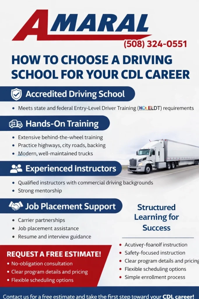Investing in the right driving school for your CDL career creates a strong foundation for long-term success. At Amaral Companies, students train with experienced instructors who understand what it takes to succeed both on the CDL exam and on the job. Our hands-on, skills-focused program is designed to build real confidence behind the wheel—not just help you pass a test, but prepare you for a lasting career in commercial driving.